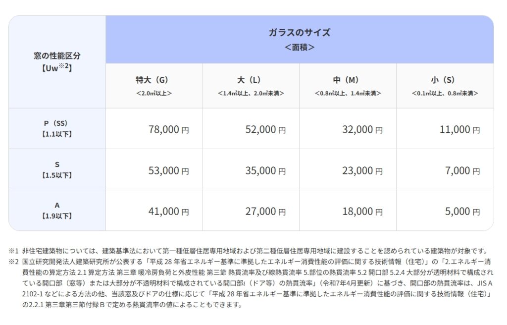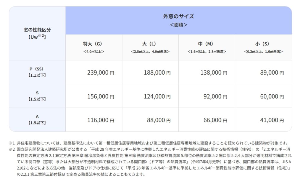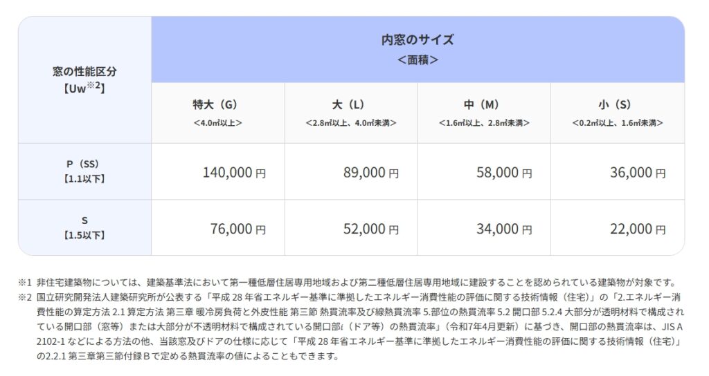 工事の行いやすさから弊社では内窓取付が人気ですが、2026年は性能区分が厳しくなりSS~Sのみ申請可能となりました。ですが事業全体で窓の大きさに新しく特大という区分が設定されたため、大きな窓の工事をされる場合、より魅力的な補助金となっています。